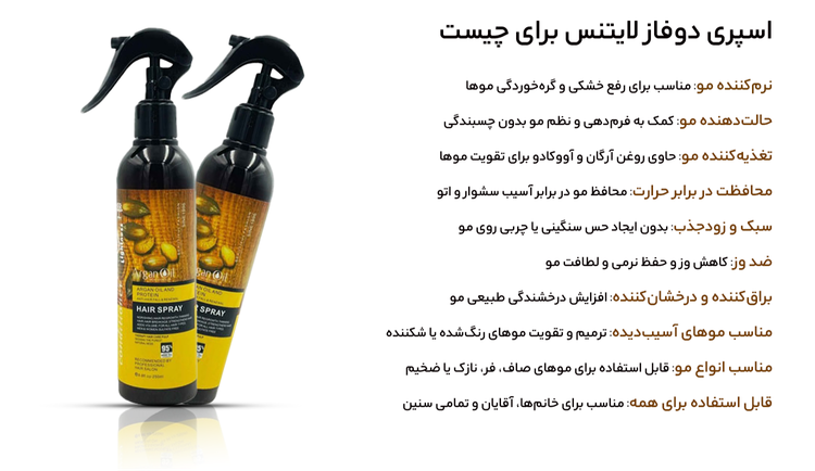 اسپری دوفاز مو لایتنس حاوی روغن آرگان حاوی روغن آرگان برای چی خوبه