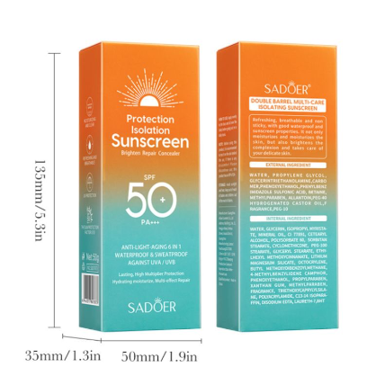 کرم ضدآفتاب و آبرسان دوکاره سادور ۶ در ۱ ضدپیری و روشن کننده پوست حجم ۵۰ گرم Sadoer Sunscreen Spf50 6 in 1