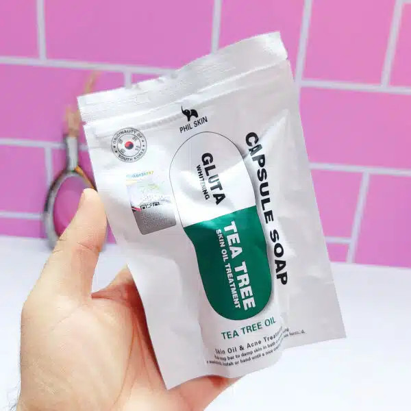 صابون کپسولی فیل اسکین مدل چای سبز Tea Tree Oil + Gluta یک شوینده تخصصی برای پاکسازی عمیق پوست، کاهش جوش و لک و کمک به روشن تر شدن رنگ پوست است. این صابون با ترکیب مؤثر روغن درخت چای، گلوتاتیون و ویتامینها، بدون ایجاد خشکی، پوست را تمیز، شفاف و شاداب میکند.