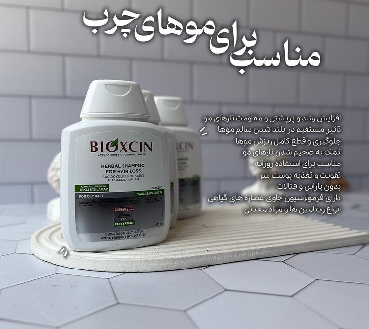 این محصول مناسب برای موهای چرب بوده و میتواند از افزایش چربی پوست سر جلوگیری نماید. همچنین، حاوی مواد معدنی از قبیل مس، روی، آهن، کلسیم و از طرفی فلاونوئیدهایی مانند کائمفرول و آپیژنین میباشد که به تغذیه و ترمیم موهای آسیبدیده و درمان پوست سر کمک میکنند. با اسیدهای چرب غیراشباع امگا 6 و امگا 9، آمینواسیدها و بیو کمپلکس B11، این شامپو میتواند موها را مرطوب کرده و سلامت پوست سر را تقویت نماید. بهطورکلی، شامپو ضد ریزش بیوکسین کلاسیک یک محصول چندمنظوره و غنی از ترکیبات مؤثر برای مراقبت از موها و پوست سر است که به بهبود وضعیت موها و پوست سر کمک میکند. درصورتی که نیاز به یک شامپوی مطمئن با اثر روی انواع شوره های خشک و چرب و بزرگ و کوچک و تکه تکه دارید، این محصول برند بیوکسین گزینه مناسبی است